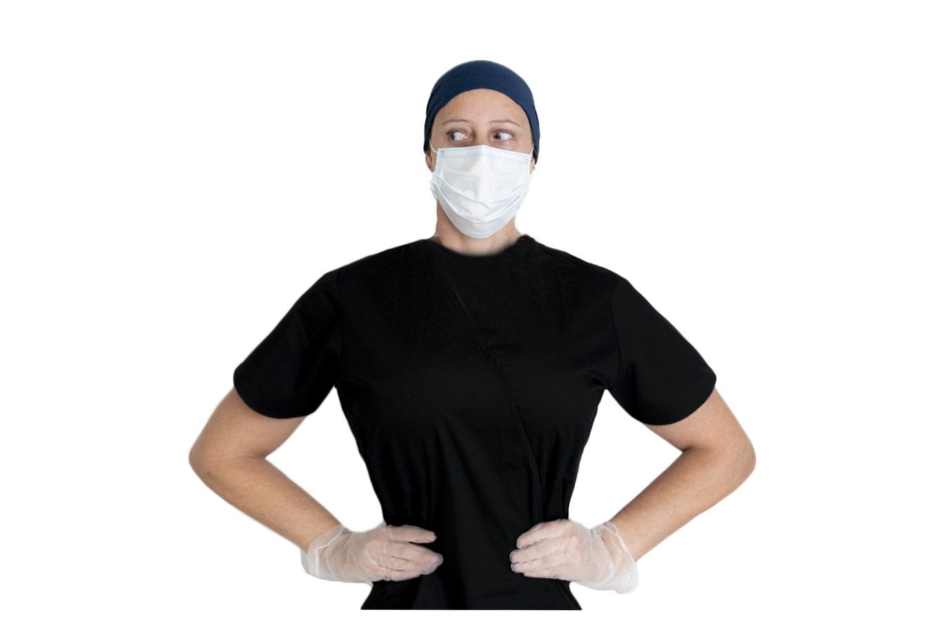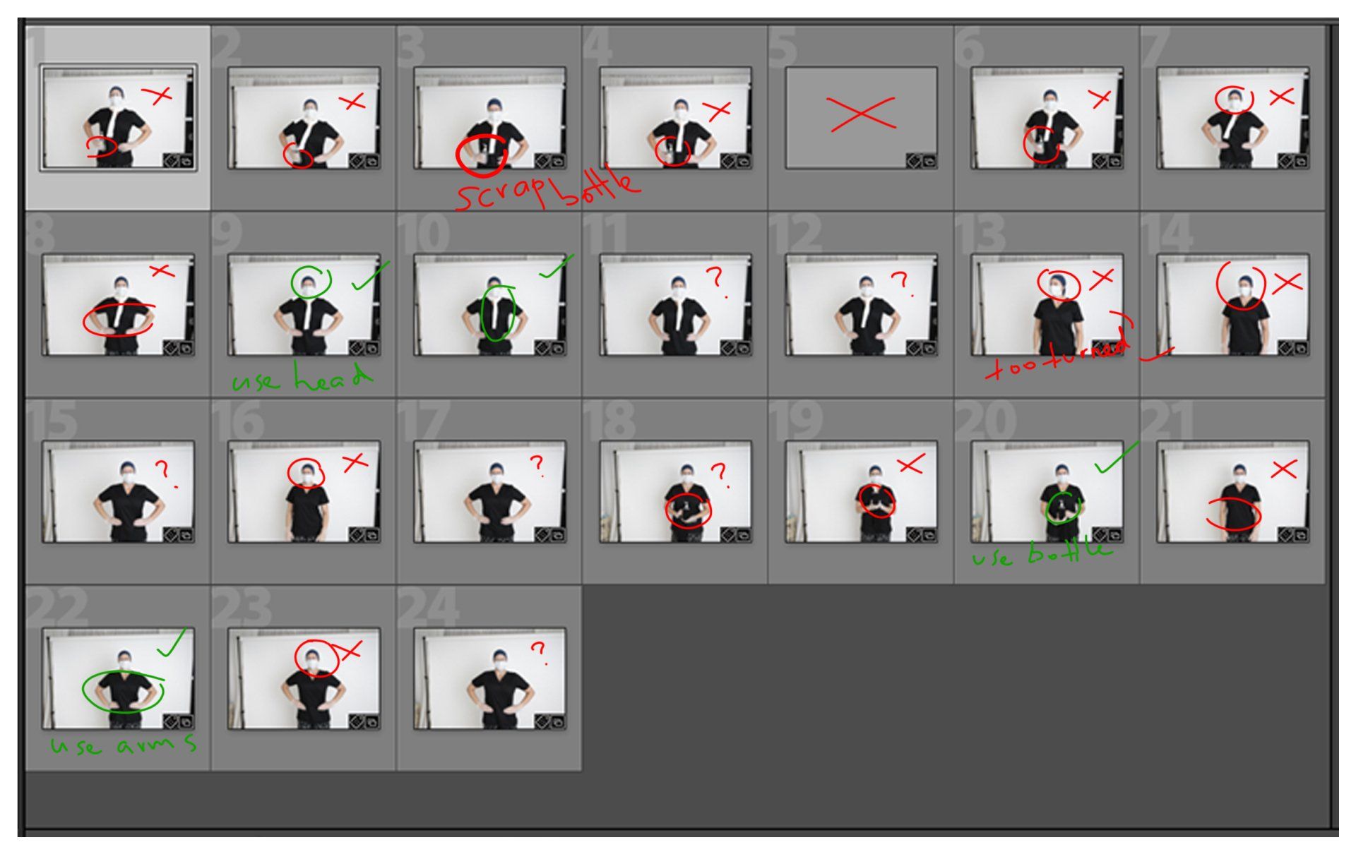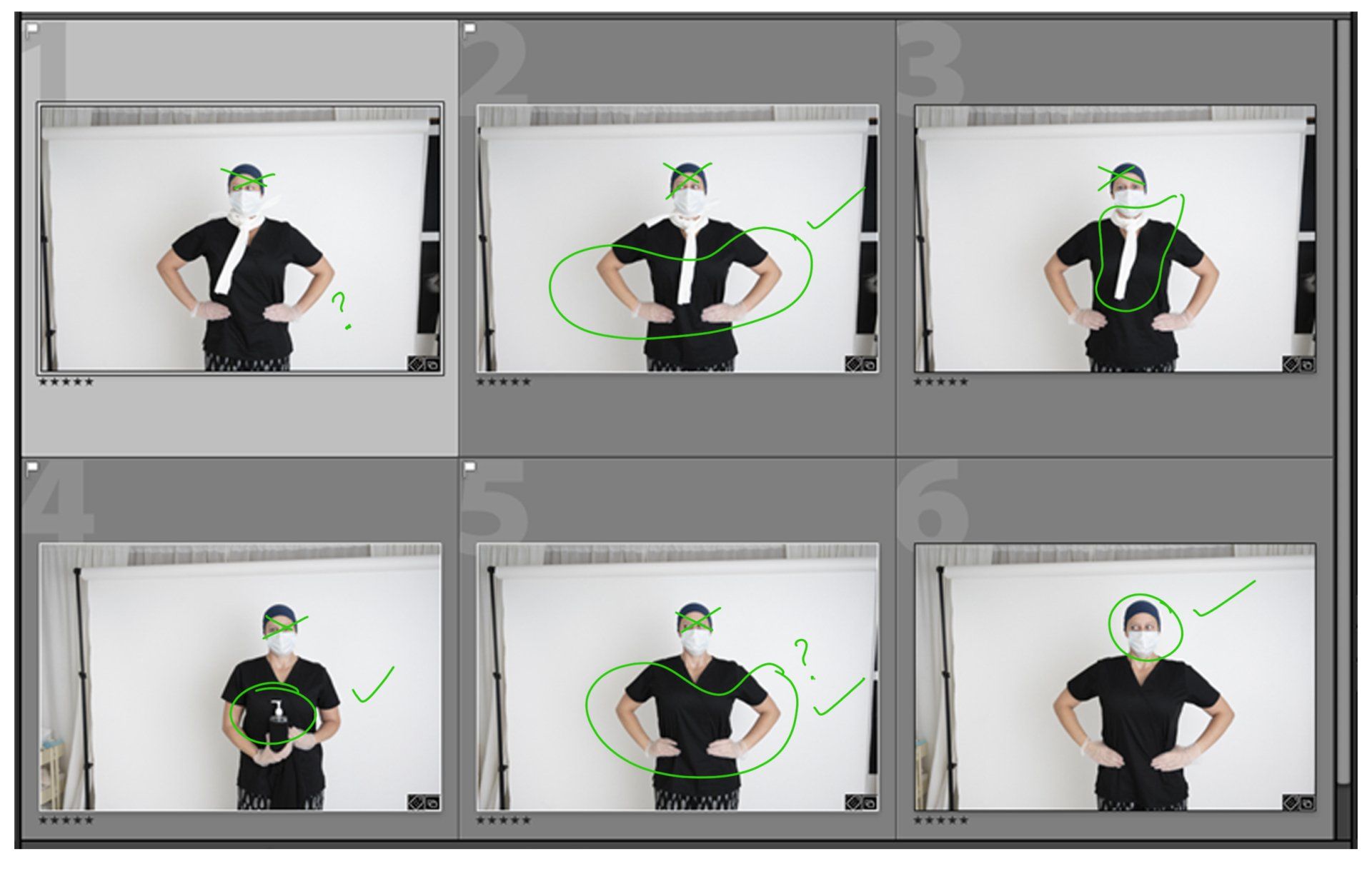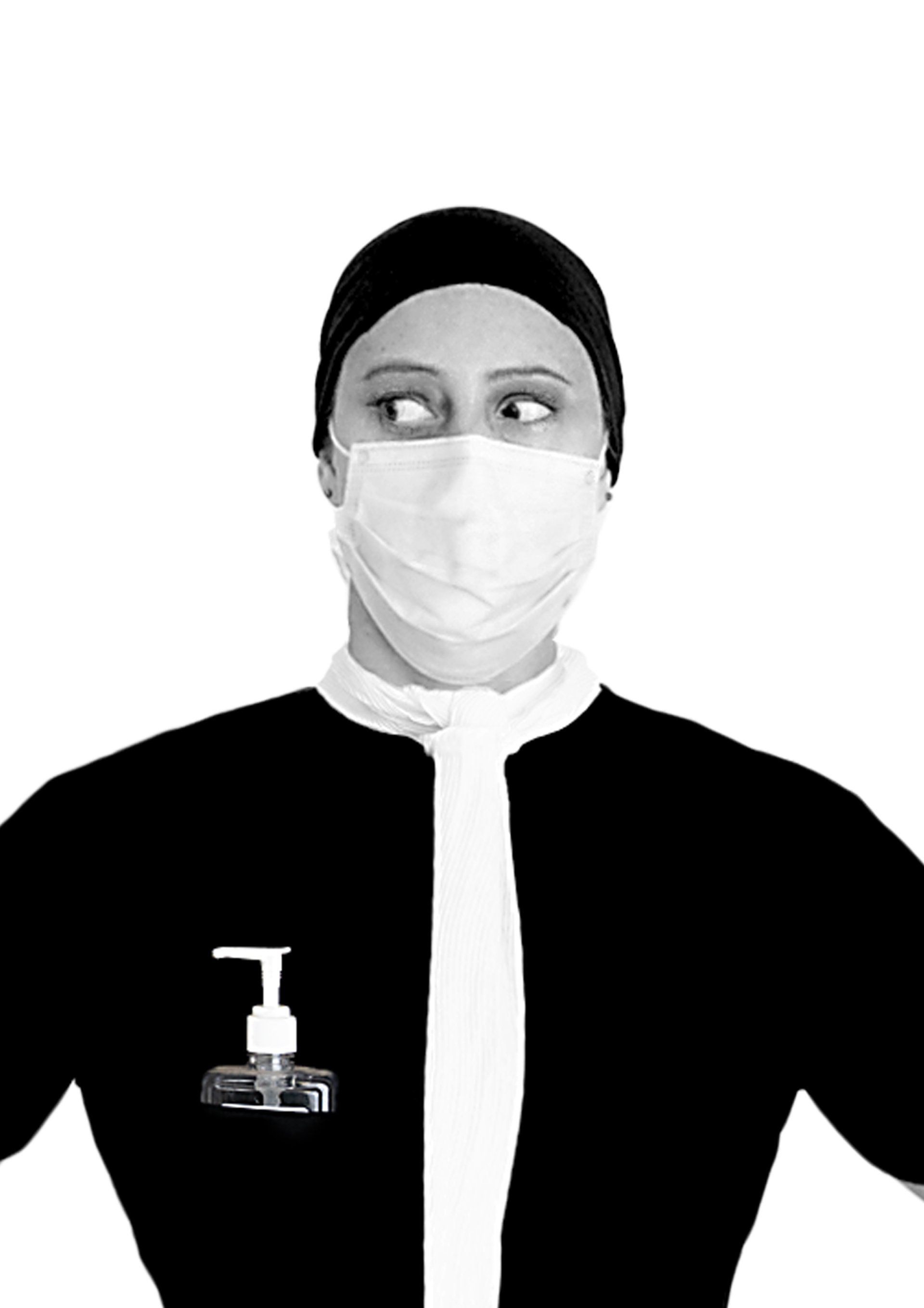 First I captured a series of images with different elements, expressions and content. I incorporated a face mask, toilet paper scarf, medical hair wrap and hand sanitiser - all indicative of the times.