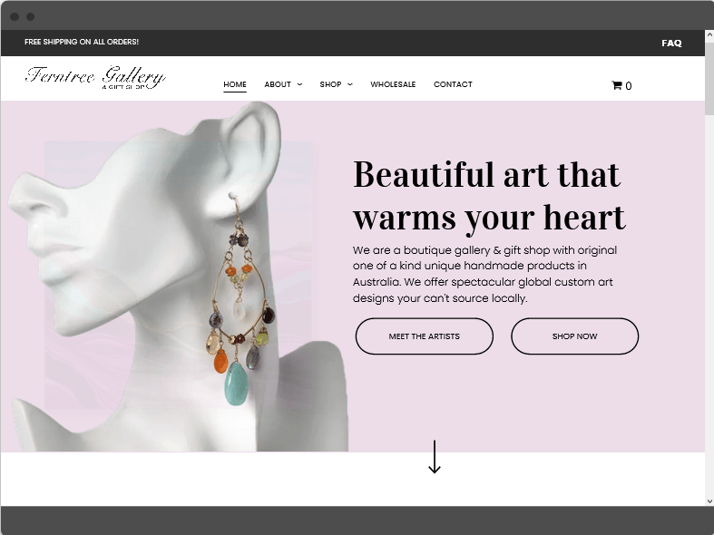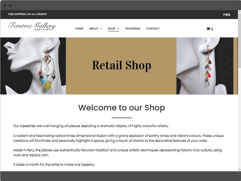 The Ferntree Gallery website was designed for a Victorian Gallery and Gift shop that sells unique and hard to get paintings, tapestries and jewellery. The aim of the site was to not only showcase the products available but to also contain an e-commerce shop and wholesale page for other businesses interested in selling the products.